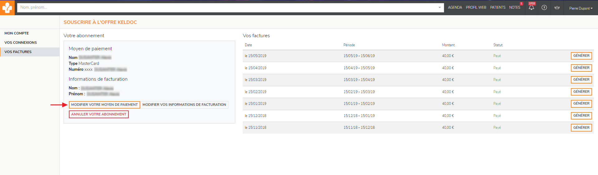 Vous pouvez modifier votre moyen de paiement liée à votre abonnement en passant par Mon compte puis Facturation.