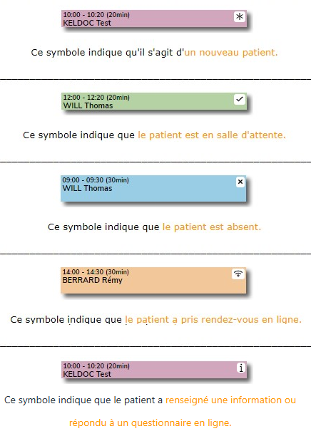 Dans votre agenda, il est possible que vous retrouviez différents sigles à côté des rendez-vous.