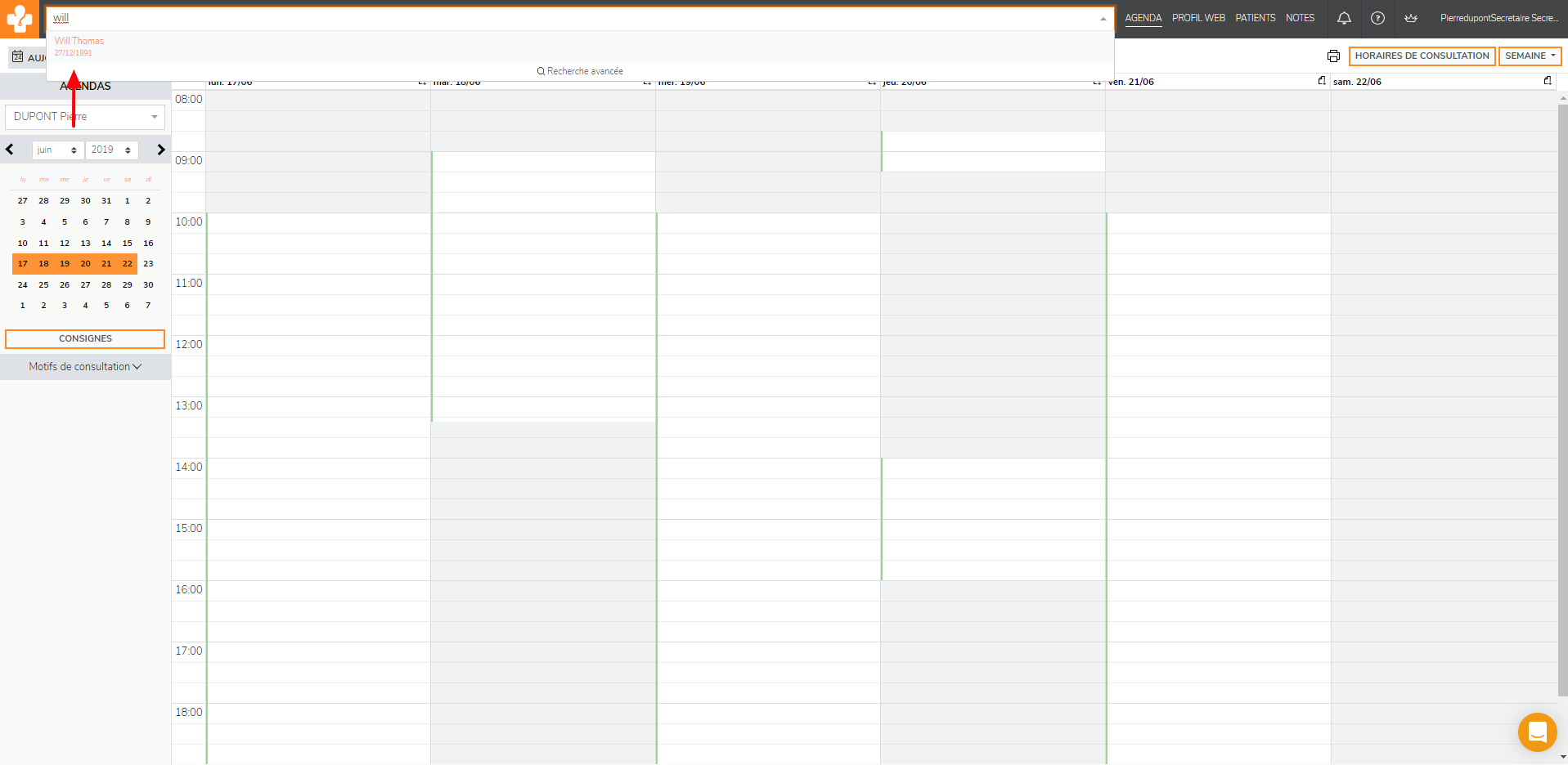 Afin de bloquer un patient, recherchez à l'aide la barre de recherche le patient concerné puis sélectionnez son compte.