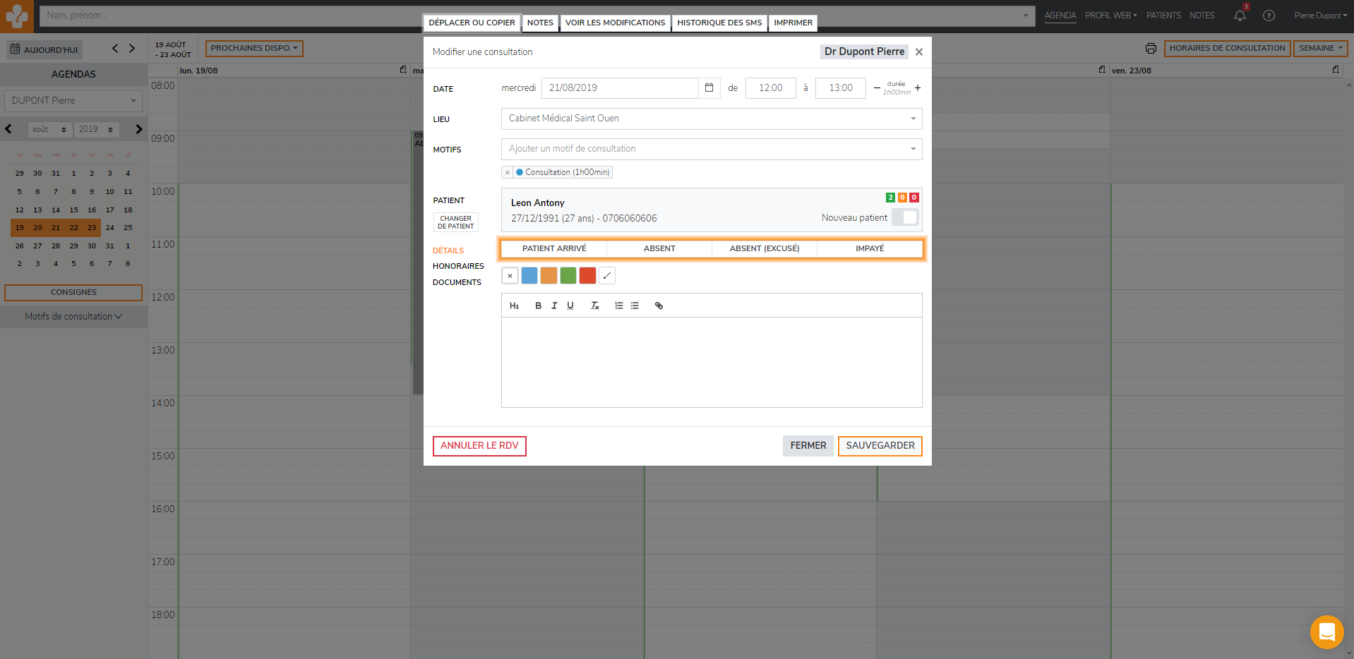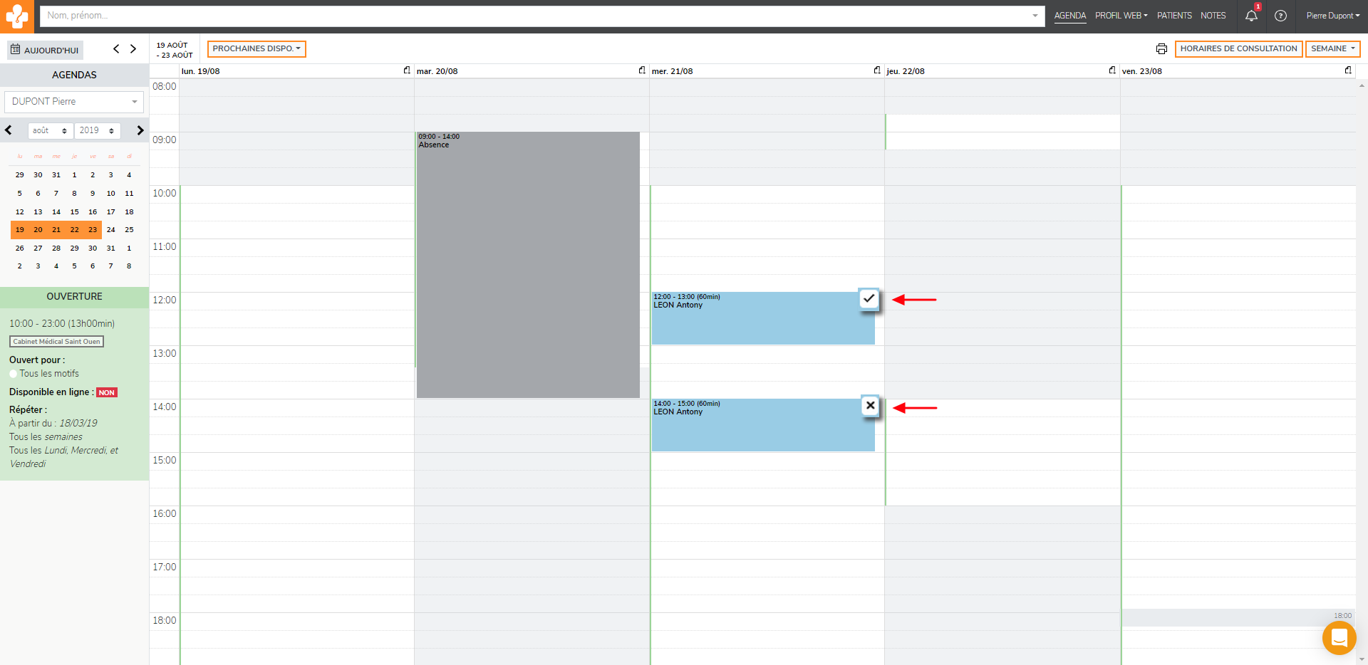 L’agenda KelDoc vous permet de signaler si un patient est :