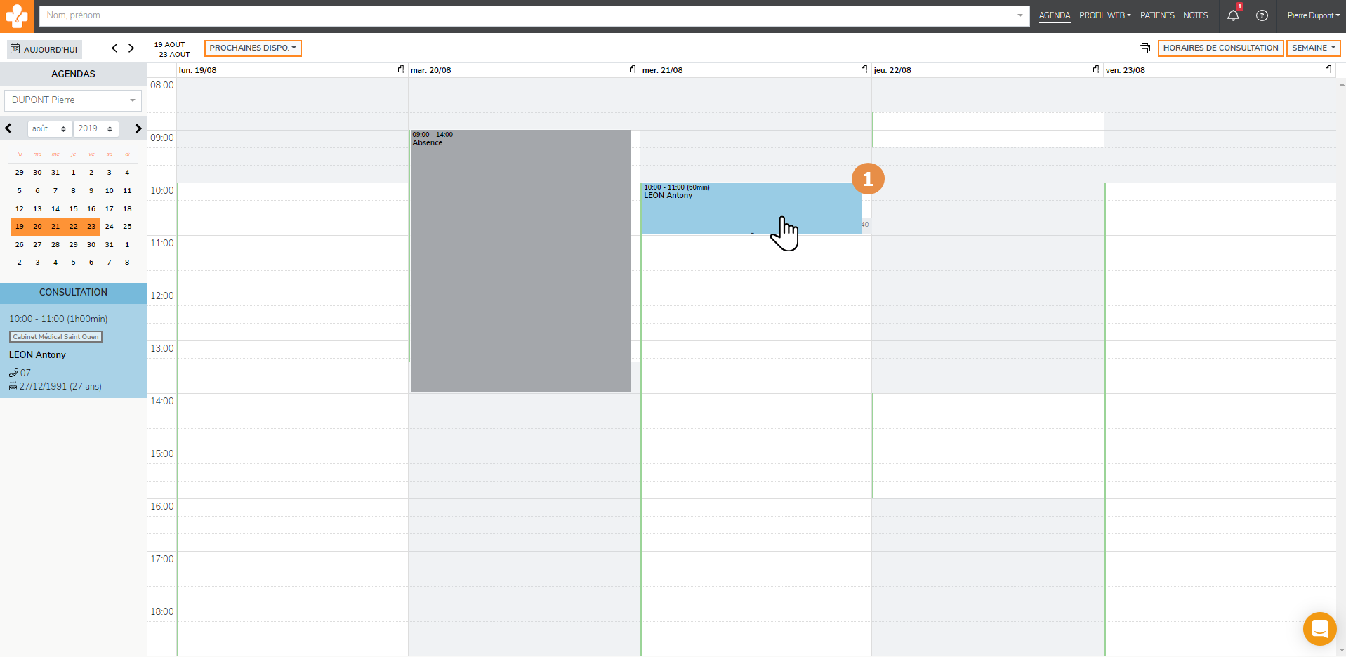 - Cliquer sur le rendez-vous